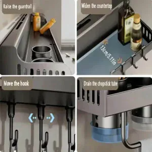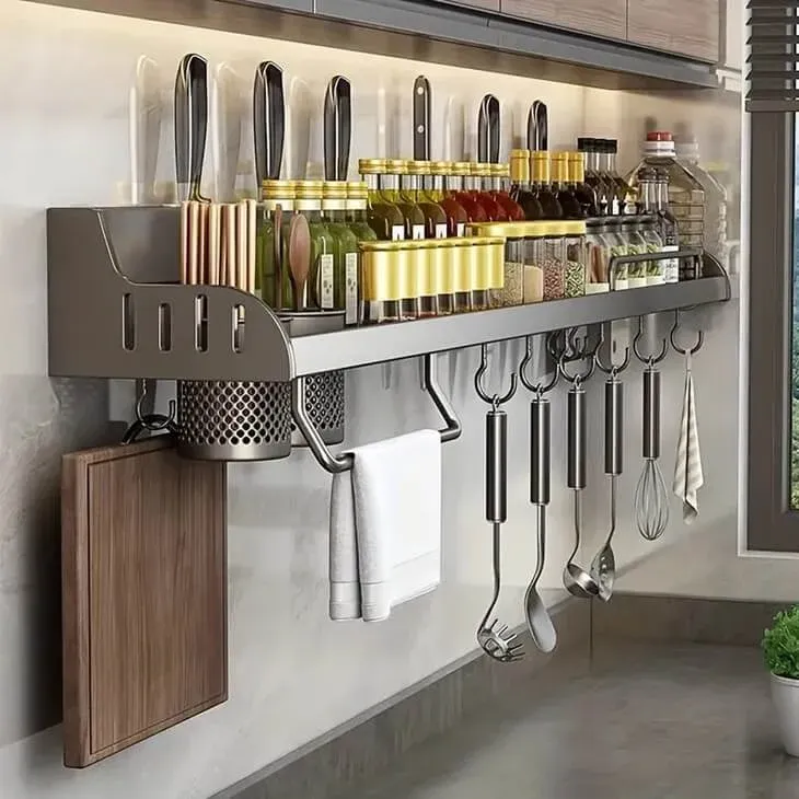Optimisez votre espace de cuisine avec cette étagère murale multifonctionnelle, conçue pour organiser vos ustensiles et assaisonnements de manière élégante et pratique. Fabriquée en acier inoxydable de haute qualité, elle est durable, résistante à la rouille et facile à nettoyer. Son installation sans perçage préserve vos murs tout en offrant une fixation solide.